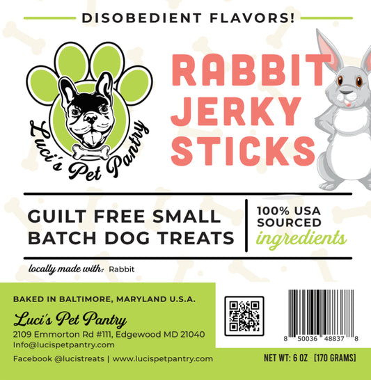 Rabbit Sticks - All Natural Single Ingredient Dog & Puppy Jerky Treats - 2 oz. Pouch