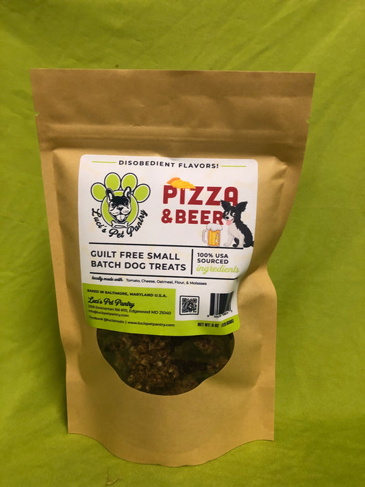Pizza & Beer - All Natural Dog & Puppy Treats - Disobedient Biscuits! 6 oz. Pouch