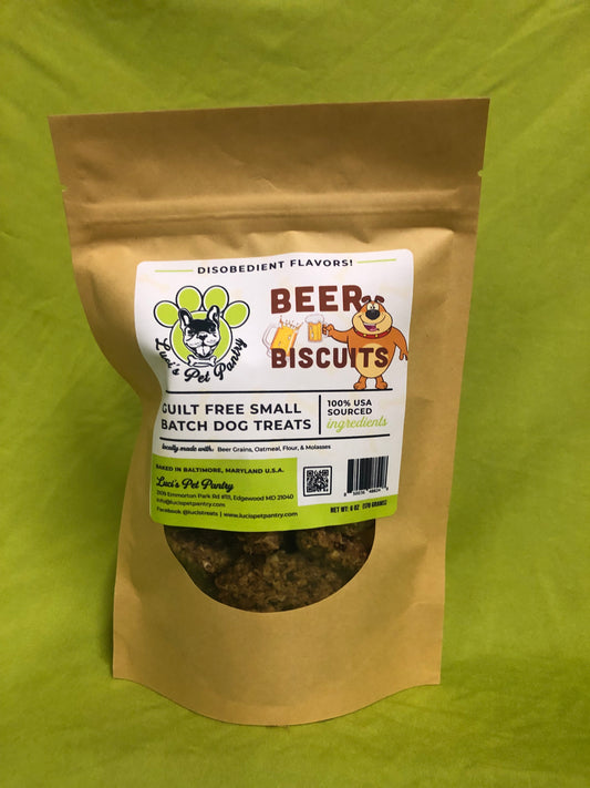 Beer Biscuits - All Natural Spent Beer Grain Dog & Puppy Treats - Disobedient Biscuits! 6 oz. Pouch