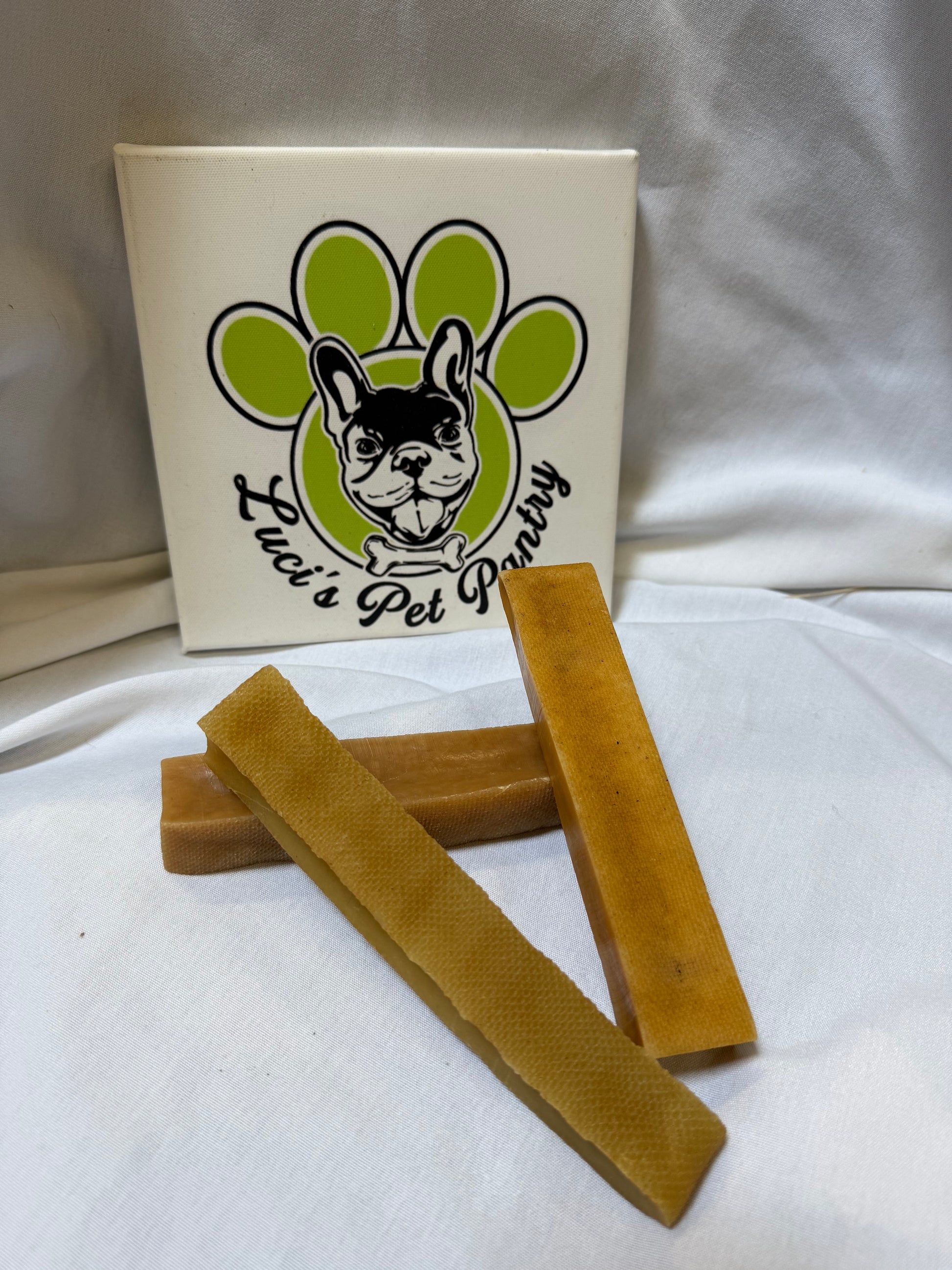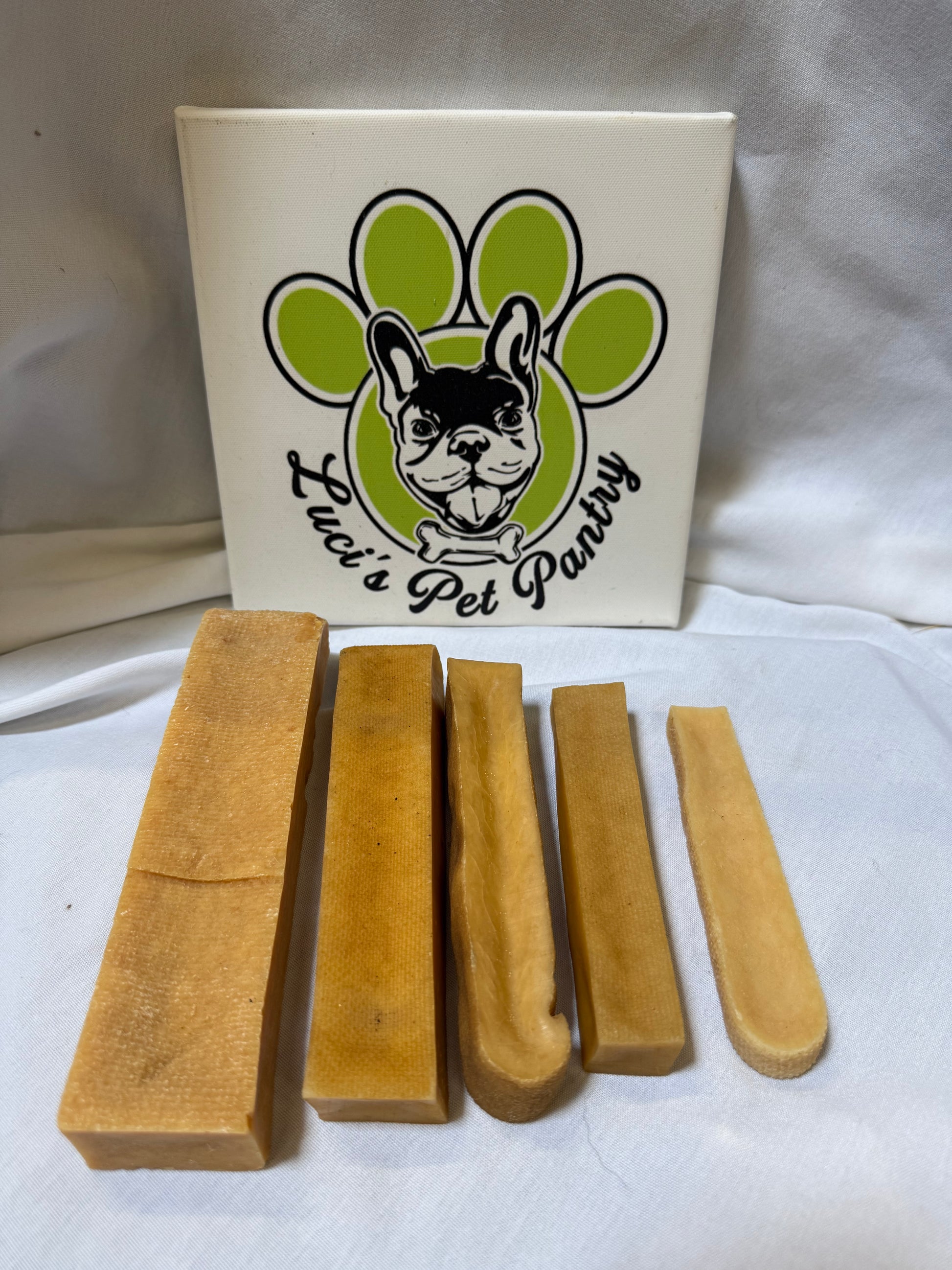 Yak sticks are high in protein, amino acids, calcium and Omega 3 with anti-oxidant and immune boosting benefits. Yak cheese chews are hard to touch, are highly durable and act as a dental stick, helping to remove plaque and tartar from teeth and maintain gum health.